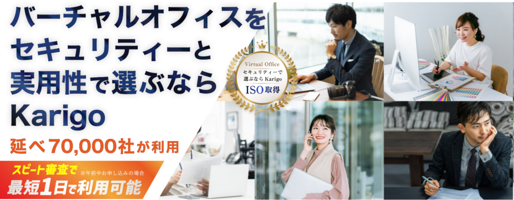 Karigoは全国60拠点以上を展開する老舗バーチャルオフィス事業者です。長年の運営実績があり、法人登記や電話転送サービスなどオプションが豊富です。