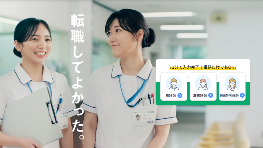 登録・利用は完全無料なので、転職を少しでも考えている看護師にとって非常に使いやすいサービスです。