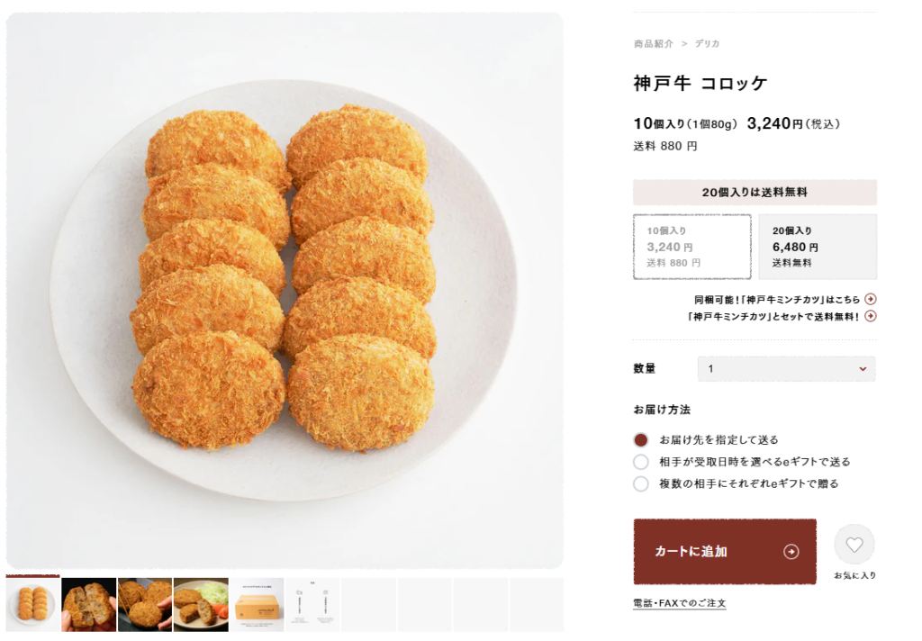| 2位 | 辰屋 神戸牛コロッケ | 2,160円〜 | 神戸牛 | 高級・老舗・ギフト向き | ギフト包装対応 |