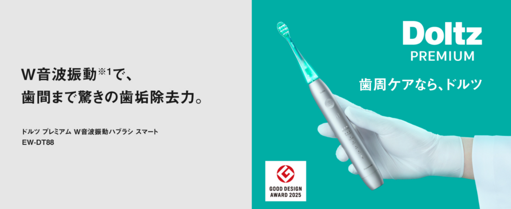 パナソニックのドルツは、日本人の口腔環境に合わせて設計された使いやすさが魅力の電動歯ブラシです。音波振動によるやさしい磨き心地と、軽量設計で長時間の使用でも疲れにくいのが特徴です。