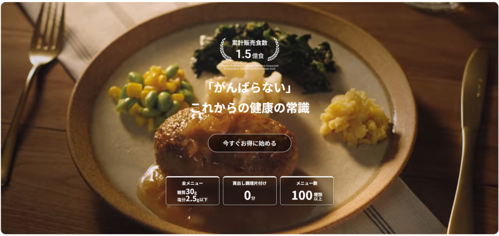すべてのメニューが電子レンジで温めるだけで食べられるため、料理の手間を完全に省くことができます。仕事や育児で疲れている日でも、数分で食事が完成するのは大きなメリットです。また、メニューは常時60種類以上あり、飽きにくい設計になっています。