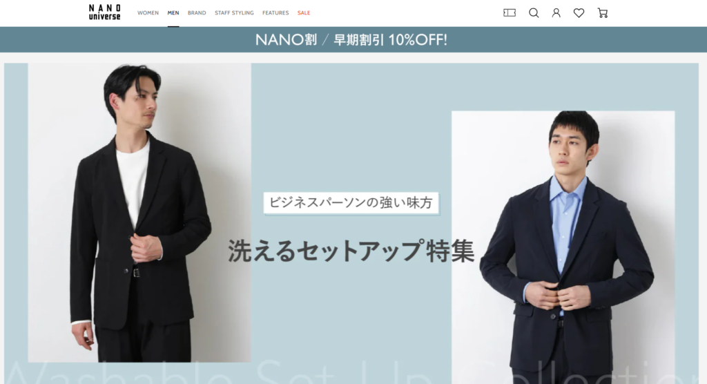 ナノ・ユニバースは、セレクトショップとしてのブランド力を持つファッションブランドで、洗練された都会的なデザインが特徴です。品質やデザイン性に優れており、大人の男性にふさわしいアイテムが揃っています。