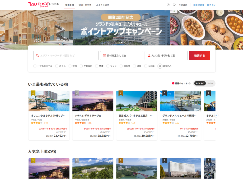 迷ったらYahoo!トラベルを選べば間違いありません。