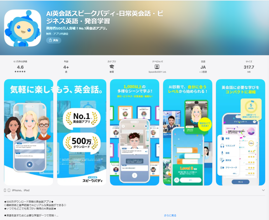 仕事で英語を使う必要がある人には非常におすすめのサービスです。ただし、時間的制約がある社会人にとってはやや負担になるため、まずはスピークバディで基礎と習慣を作るのが効率的です。