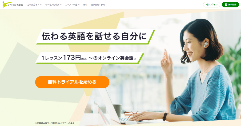 | レアジョブ英会話 | 約7,980円〜 | なし | オンライン英会話 | 無料体験あり | ビジネス英語に強い |