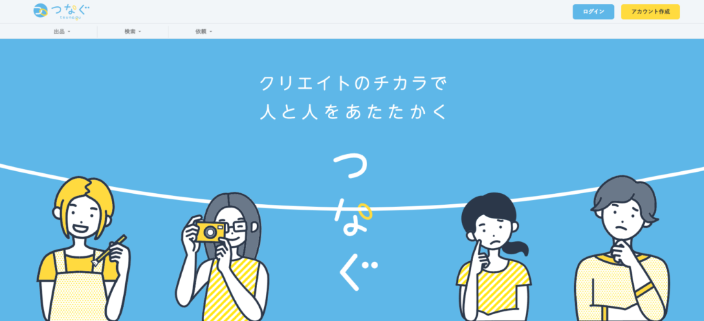つなぐは、クリエイターと依頼者をつなぐ新しいマッチングサービスで、Live2Dモデル制作にも対応しています。比較的新しいサービスながら、クリエイターとの距離が近く、柔軟なやり取りができる点が特徴です。