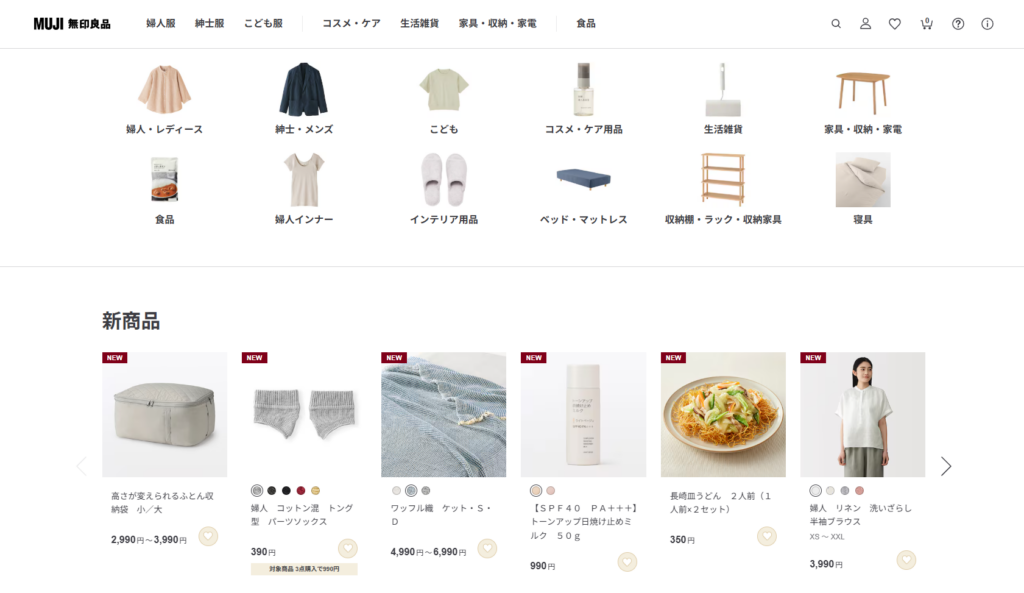 | 特典・キャンペーン | セールあり | 無印良品週間 | セール頻繁 | セールあり | セールあり |