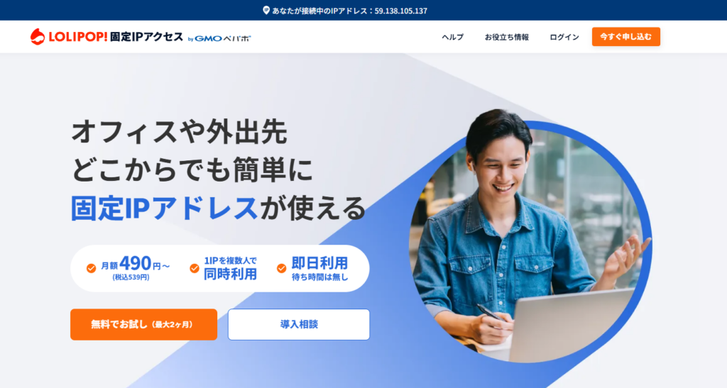 また、1つ目の固定IPは最大2ヶ月無料で使えるため、初期コストを抑えながら導入できるのも大きな魅力です。