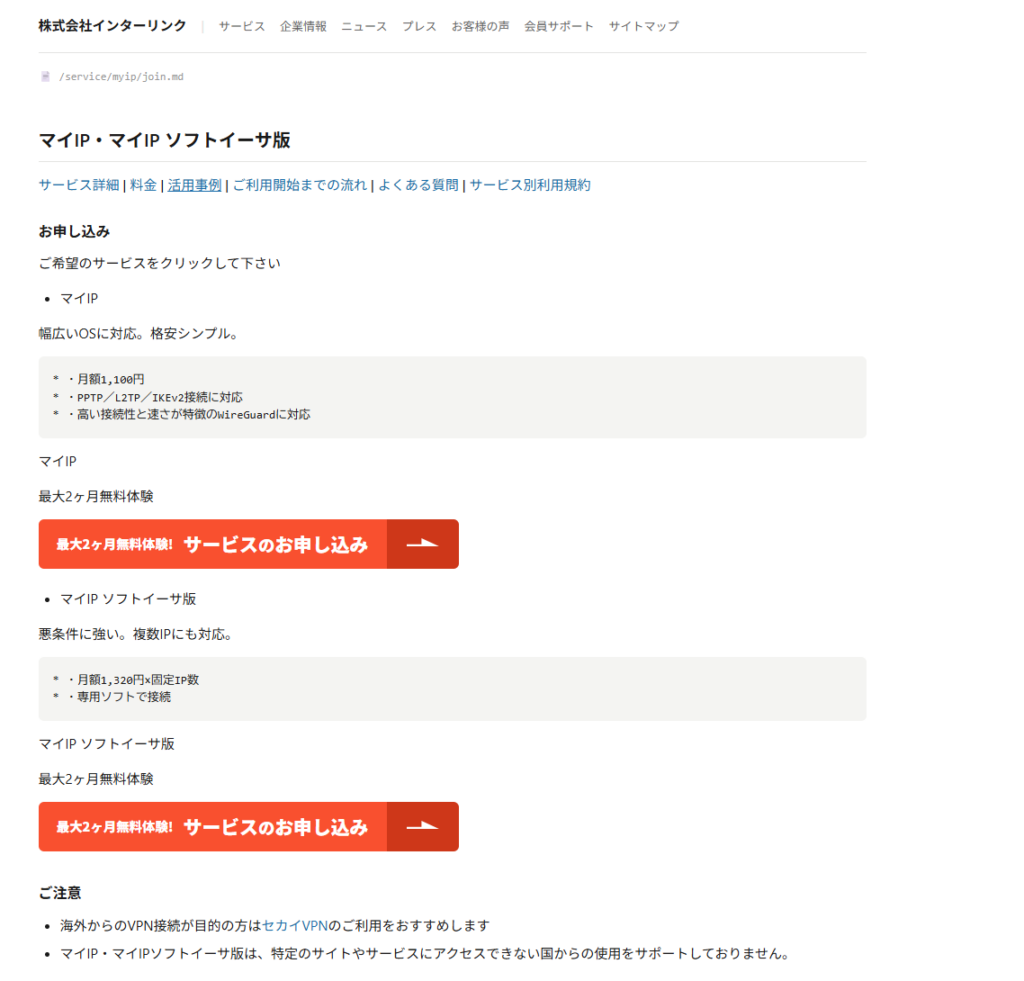 商品名:Interlink 固定IPサービス