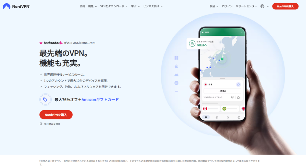 • セキュリティ重視 → NordVPN(暗号化通信)