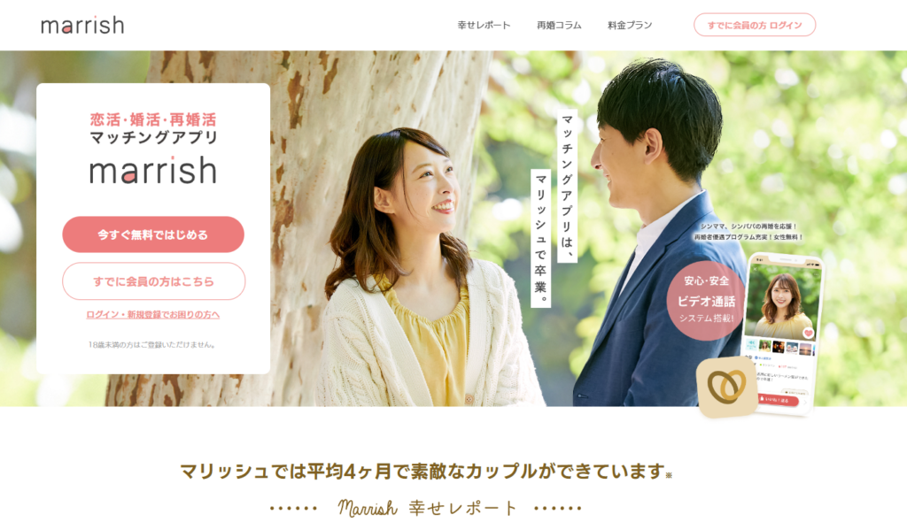 マリッシュは、再婚活・シングルマザー・シングルファザーを積極的に応援している婚活アプリとして、多くの支持を集めています。特に「再婚に理解のある会員」が多い点が最大の特徴で、他のマッチングアプリではなかなか出会えない層とマッチングできる環境が整っています。